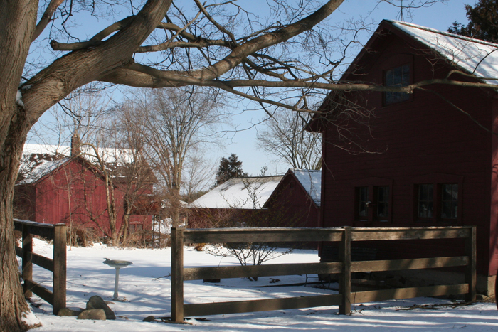 I suppose that’s what makes a collection of outbuildings arranged sensically so precious, for lack of a better word. A milieu (pardon my french) of farm buildings of mixed sizes arranged around one another around a central open space is an image that reads safe and familiar while at the same time allowing for entry from without sand exit from within. It’s a portal between the unknown of the larger world and the known of the domestic. Not so much a walled garden, which is all secrets, but a courtyard: protected, but a passageway as well.