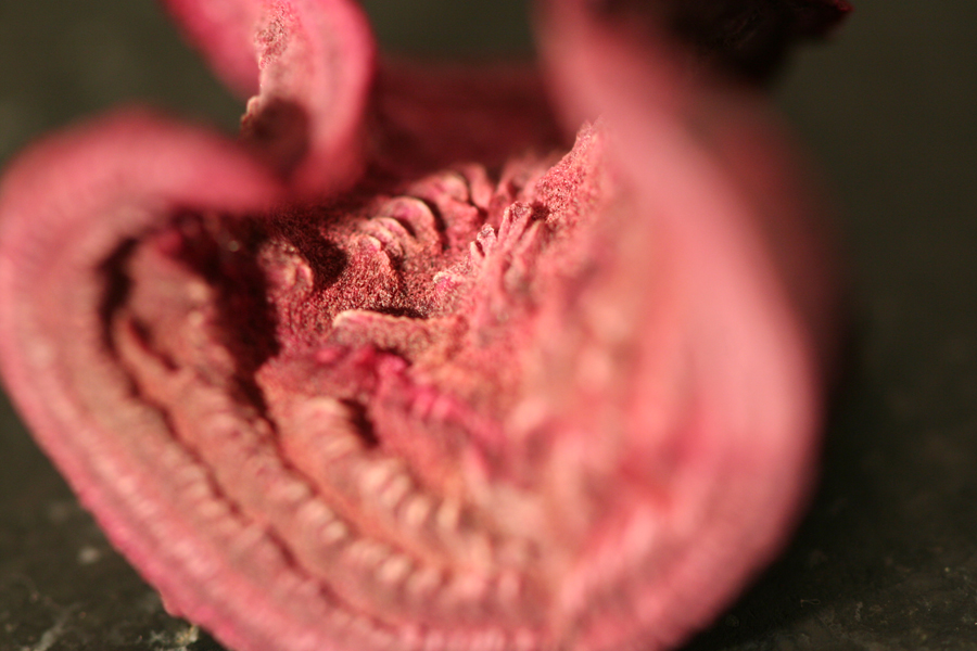 Long story short it’s pretty fun to slice things really thin and before long I had everything that would allow for thin slicing out on the counter. As you might have suspected, the nice crisp blood-red beets took rather well to the format, and I was so in awe of their colors and patterns that I kept at it until I had sliced them all.