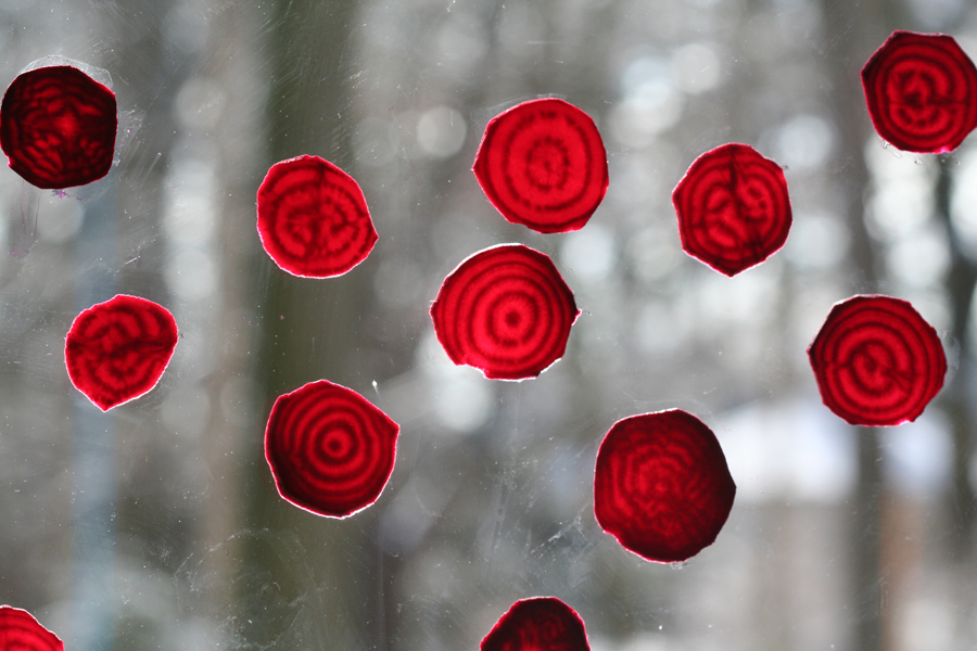 In case you were wondering, Gob made cold cellars so you can pull a bag of beets out in February like you plucked them from soil just yesterday, slice them, dice them, dry them, and paste them to windows (and anything else they’ll stick to – especially bodies). And then take pictures.